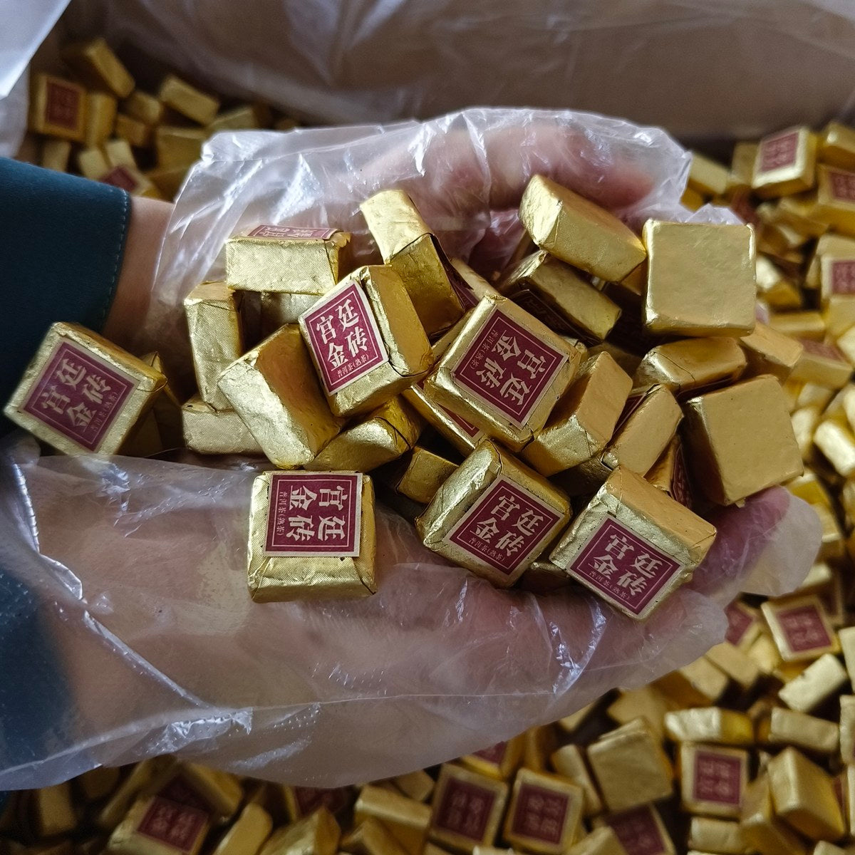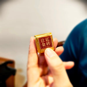 這款 #迷你宮廷小金磚茶 的靈魂在於其精巧討喜的「金磚」造型。每塊約 6~7 克,正是沖泡 150cc 茶壺的黃金比例。