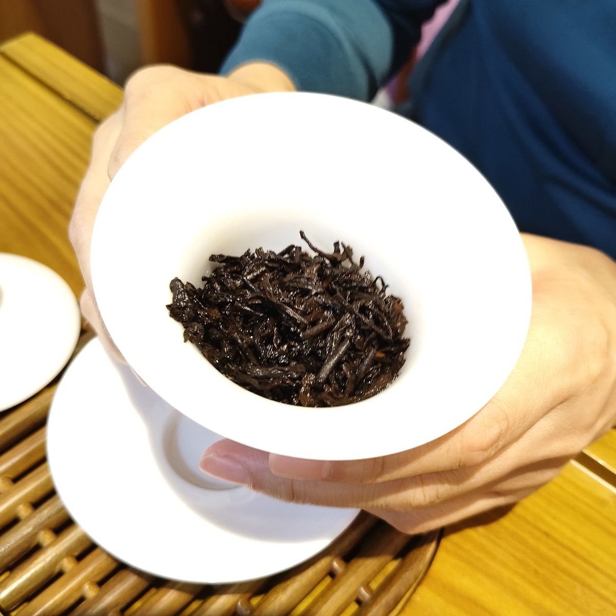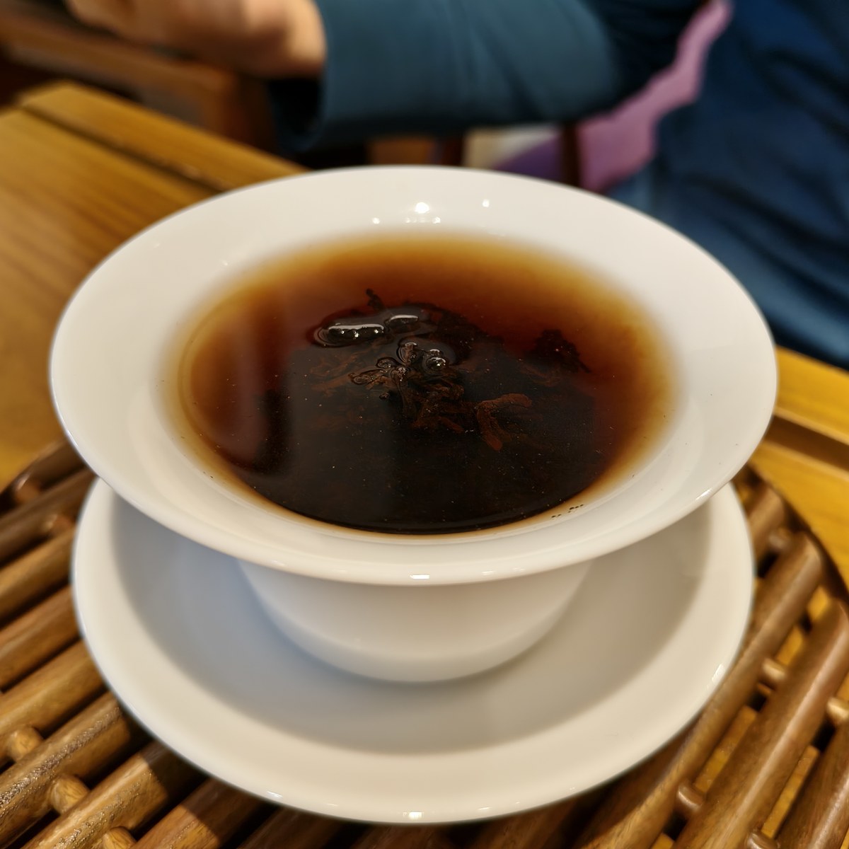 經過幾年的適度陳化,這款熟茶的燥熱渥堆味已退,取而代之的是絲緞般的滑順感與淡淡的木質甜香。